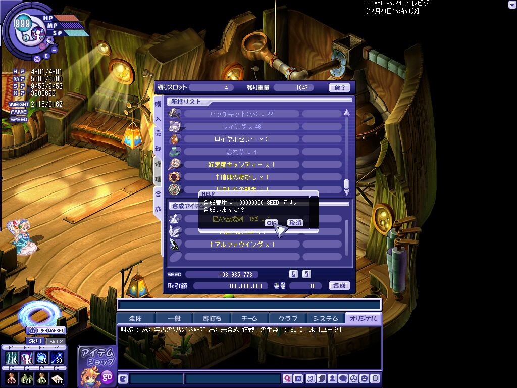 ルベ性杖を130mで売ってSEED作りました。